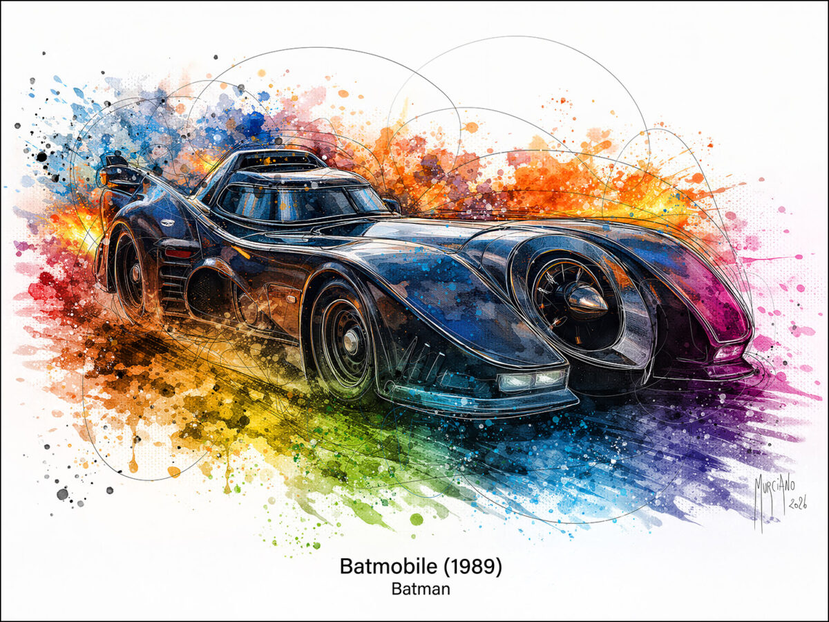 Plus qu’une simple voiture, la Batmobile est un symbole de puissance et de technologie. Dans cette création, Murciano utilise ses projections de peintures iconiques et ses contrastes de lumières pour donner vie au métal. Les reflets néons et les lignes dynamiques accentuent l’aspect furtif et agressif du véhicule, faisant de ce tableau une pièce maîtresse pour toute décoration geek chic ou moderne.