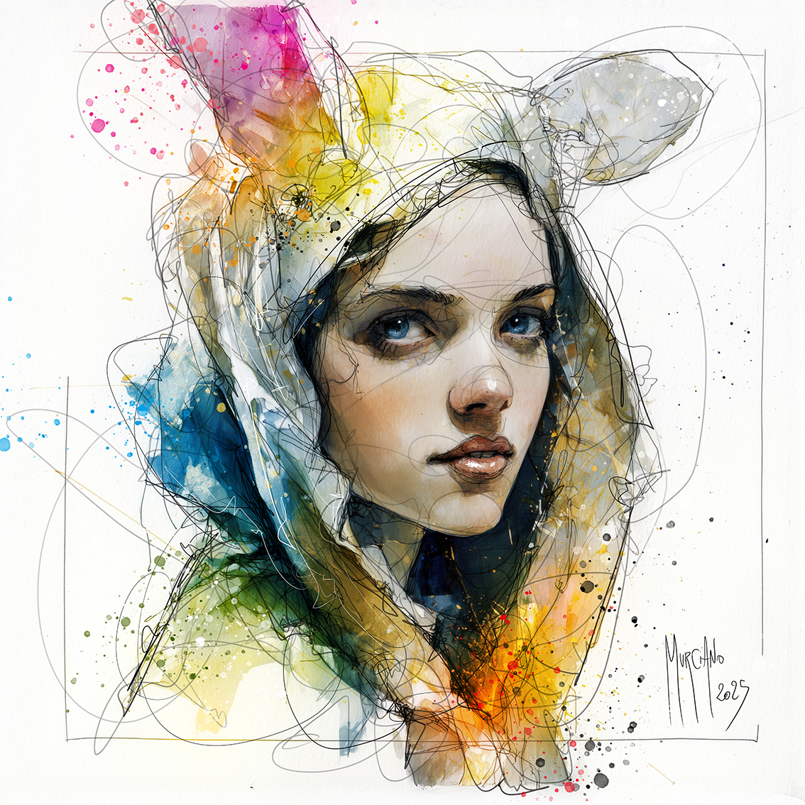 Ce tableau est une véritable explosion de couleurs. La technique mixte utilisée par l’artiste – mêlant peinture, encre et digital – donne à “Peau d’âne” une profondeur et un éclat uniques.