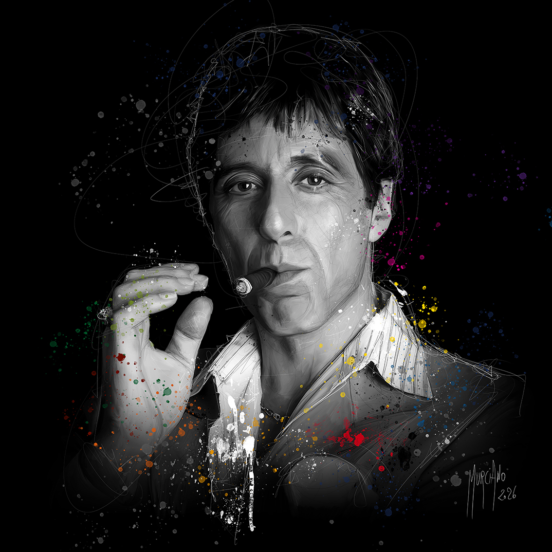Affirmez votre style avec l’œuvre la plus audacieuse de la collection : le tableau “Tony Montana” (Scarface) réinterprété par l’artiste montpelliérain Patrice Murciano. Ce portrait capture l’ambition démesurée et le charisme d’Al Pacino dans son rôle le plus légendaire, sublimé par le style Néo-Luministe.